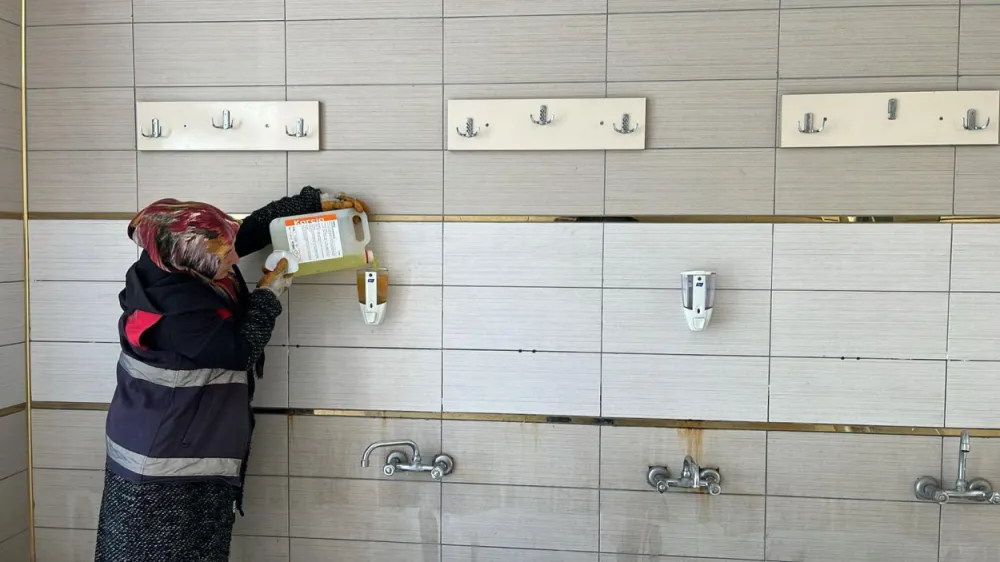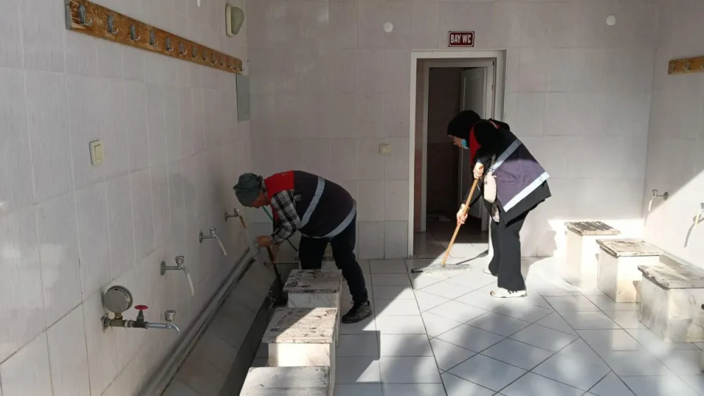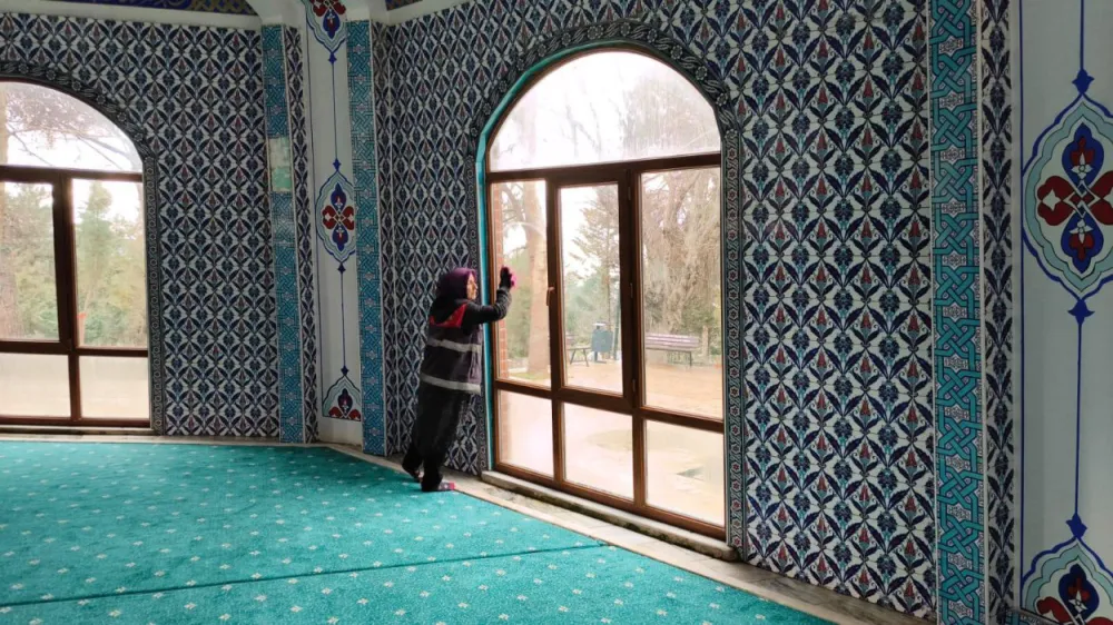 Sabahın erken saatlerine çalışmalarına başlayan ekipler, belirli program dahilinde özverili bir çalışma yürütüyor. Halılar, camlar, ayakkabılıklar, minber, mihrap, müezzin mahfili gibi cami içi alanlarda silip süpürme işlemleri yapan ekipler, dış mekanda ise abdesthaneler ve WC’leri yıkayarak pırıl pırıl yapıyor.