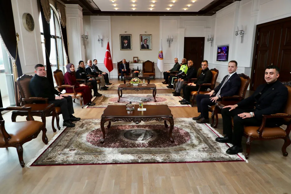 Vali Muammer Erol, Türk Polis Teşkilatı'nın 181. kuruluş yıl dönümü dolayısıyla İl Emniyet Müdürü Ahmet Acar başkanlığında heyeti makamında kabul etti.