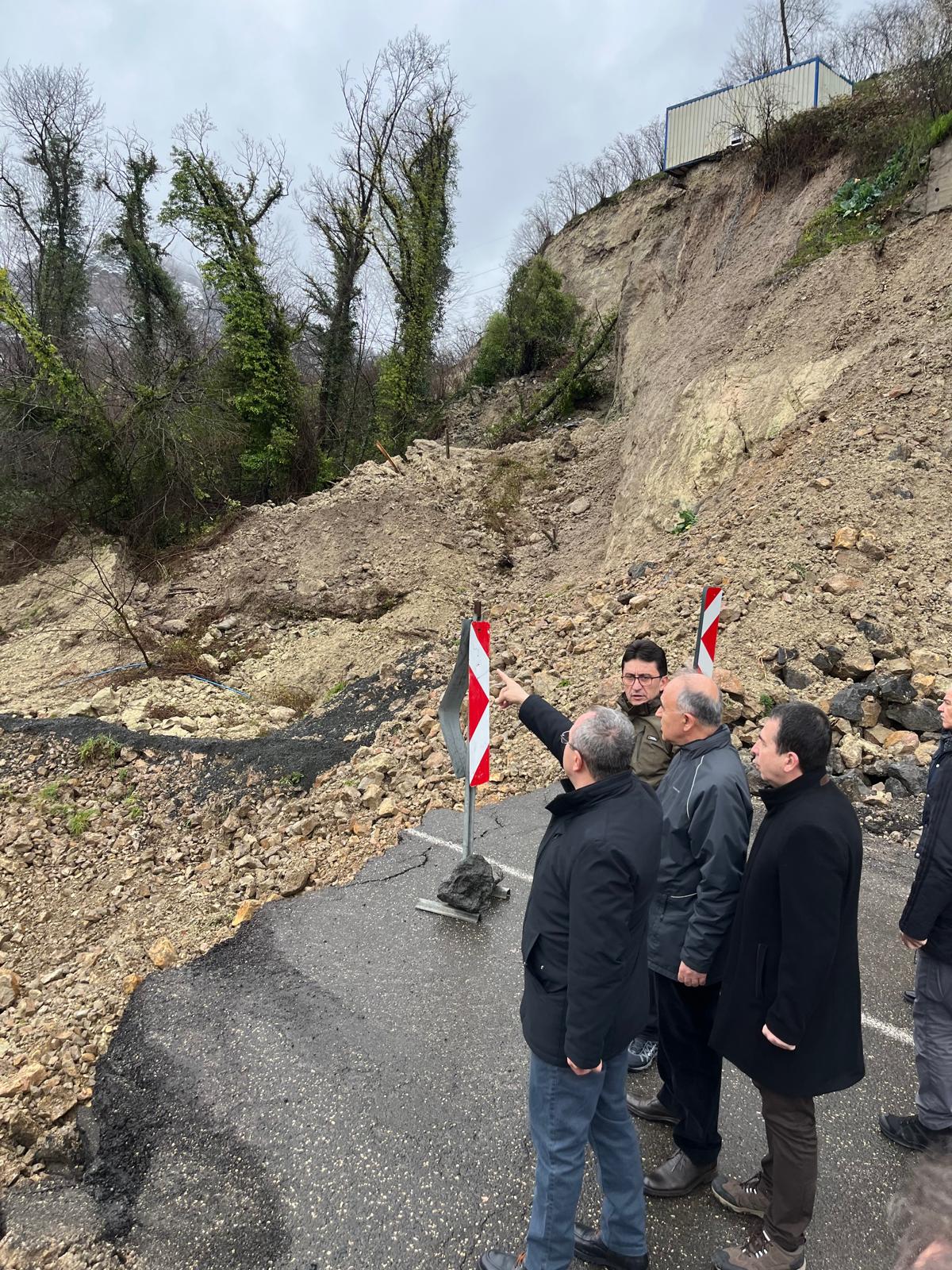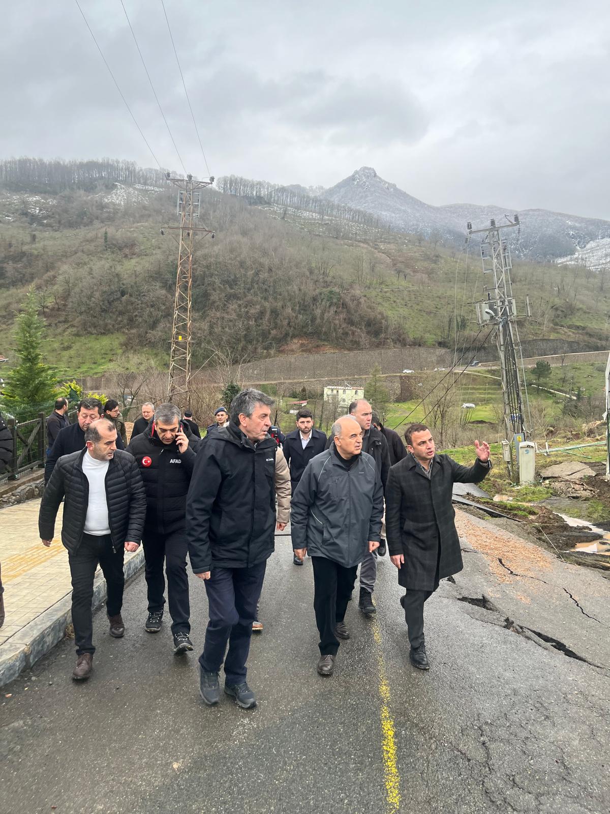 Vali Muammer Erol, Ünye ve Akkuş ilçelerini birbirine bağlayan karayolunda meydana gelen ve karayolunun ulaşıma kapanmasına neden olan heyelan alanında incelemede bulundu.